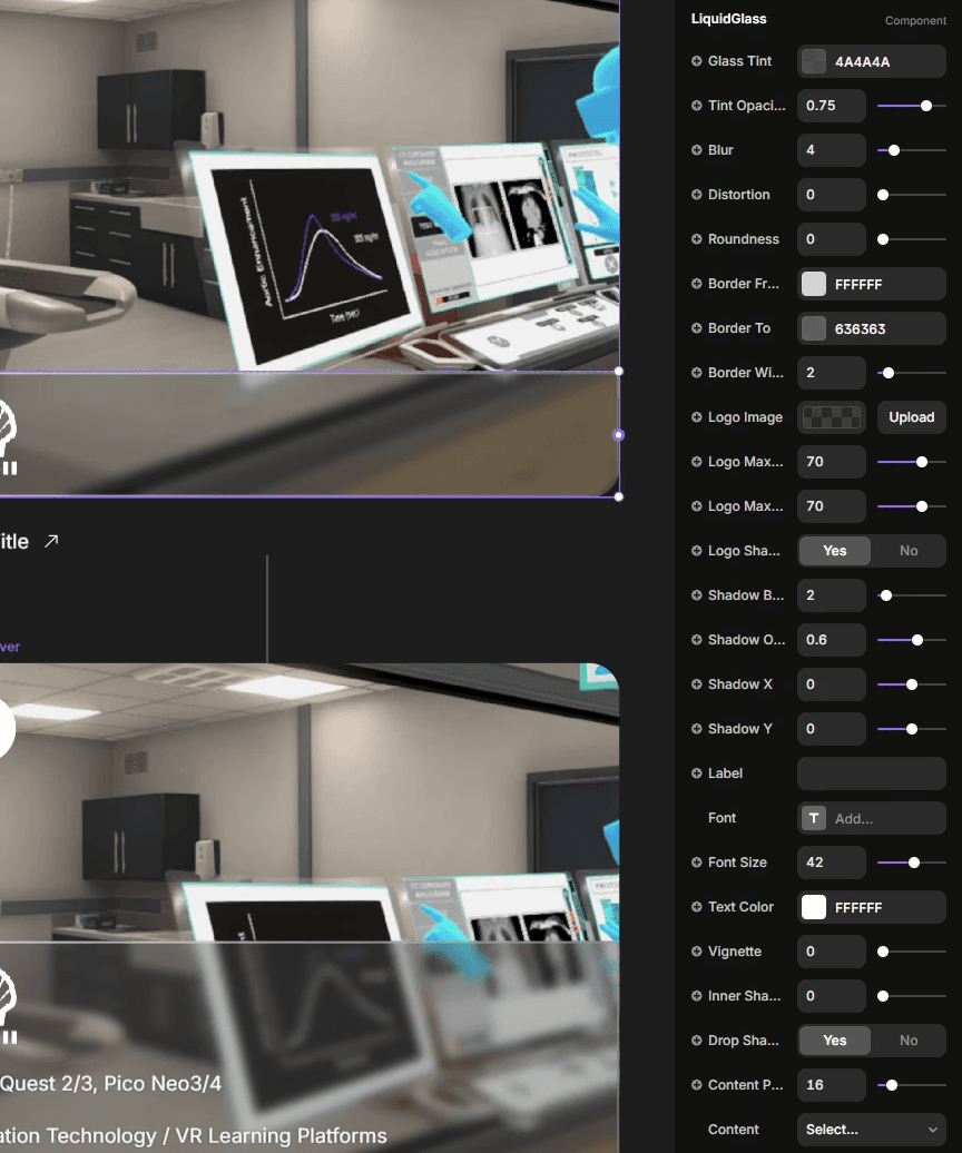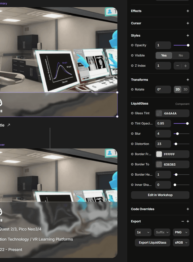 Inspired by Apple’s liquid glass UI and building on earlier "frosted glass" work from the Immerse App, I aimed to create a responsive, legible distortion-based glass effect in Framer. It posed an interesting challenge: not just in how AI could support the process, but also in exploring practical effects, like how the added distortion could reduce the amount of blur needed for legibility.