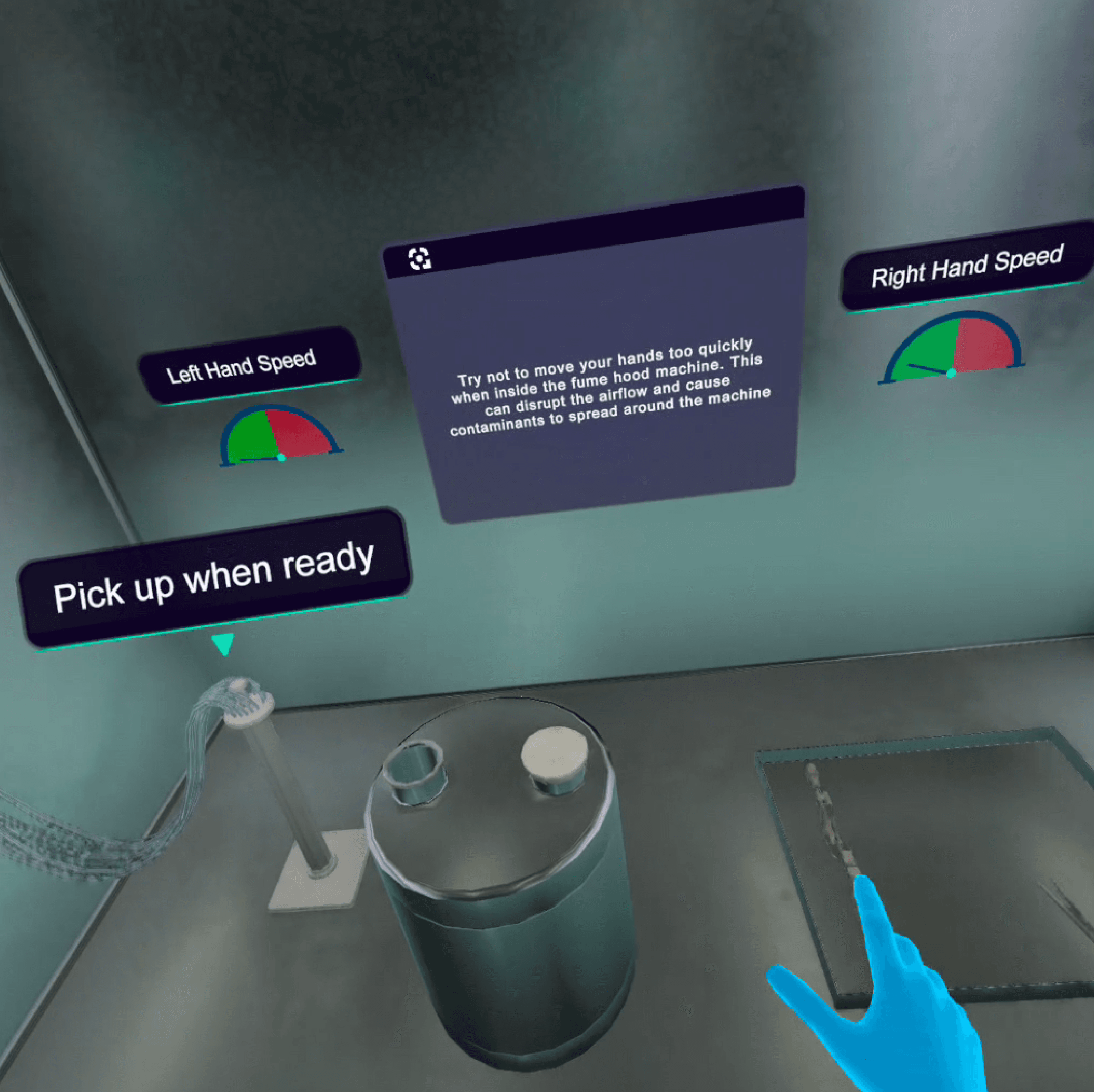 I implemented a system of layered feedback - audio, visual, and haptic - that responded to common user mistakes like dropping items, moving too fast, or skipping steps. To support the different training modes of Learn, Practice, and Assessment, I designed branching logic to scale guidance appropriately.